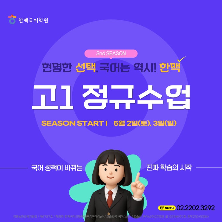 [한맥국어학원] 26년 시즌3 - 고1 정규강의 개강안내