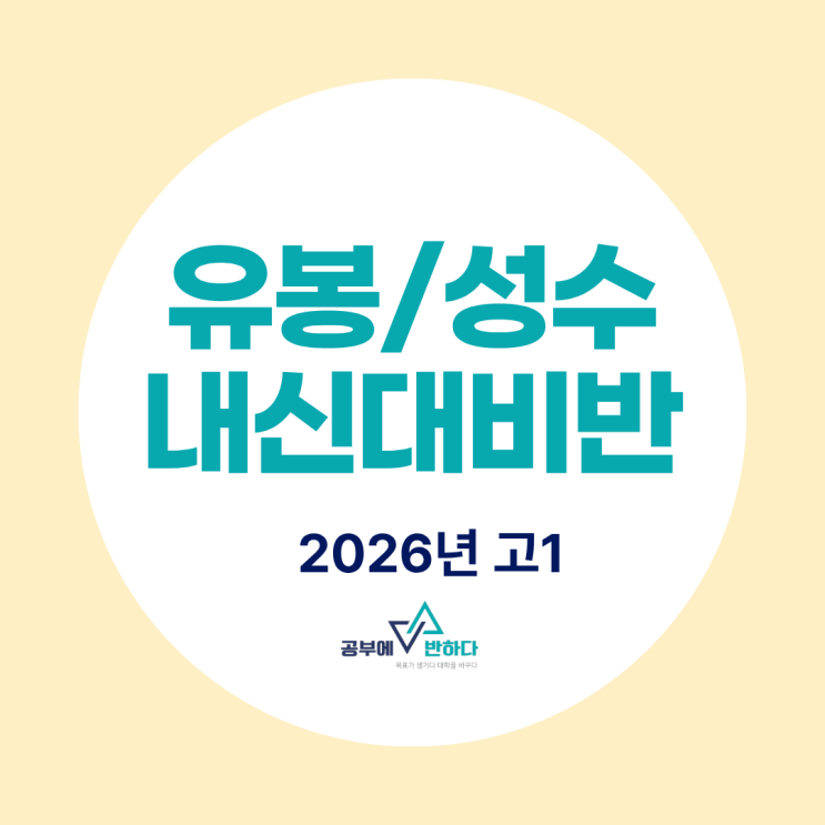 안녕하세요~ 춘천 중고등 입시전문 공부에반하다학원 부원장 이슬입니다. 2026학년도 유봉여고/ 성수여고 영어 내신대비 할 학생 모집합니다. 현재 영어 수강 중인 학생 중 유봉여고와 성수여고에 배정된 학생들이 있어 추가 모집합니다. 공부에반하다 목표가생기다 대학을바꾸다 유봉여고 성수여고 1학년 영어 내신대비반 현재 고1 수업 반 안내 ▷고1 A반 : 화목 7시 30분-9시 20분 (개학 후 시간은 변경될 수 있습니다.) ▶고1 B반 : 화목 4시 30분-6시 20분 (개학 후 시간은 변경될 수 있습니다.) 고1 A반은 현재 방학 때 어휘 집중(반의어, 유의어, 파생어)하며 고등영문법을 빠르게 1번 더 복습하고 있습니다. 영어에서 어휘의 중요성은 수....... <img src="https://blogthumb.pstatic.net/MjAyNjAyMDZfMjY3/MDAxNzcwMzQ1MzYwNzQ2.hnc5fZeudcZOhutHTcvBuEOlNKDn2coORubZa6Gymrwg.YdzpKSdgn4kMgDvZDkEVtQPauodLjOuvDEb2uhR8RCog.PNG/%C0%AF%BA%C0%BC%BA%BC%F6%BF%A9%B0%ED_%B3%BB%BD%C5%B4%EB%BA%F1%B9%DD.png?type=s3" />
