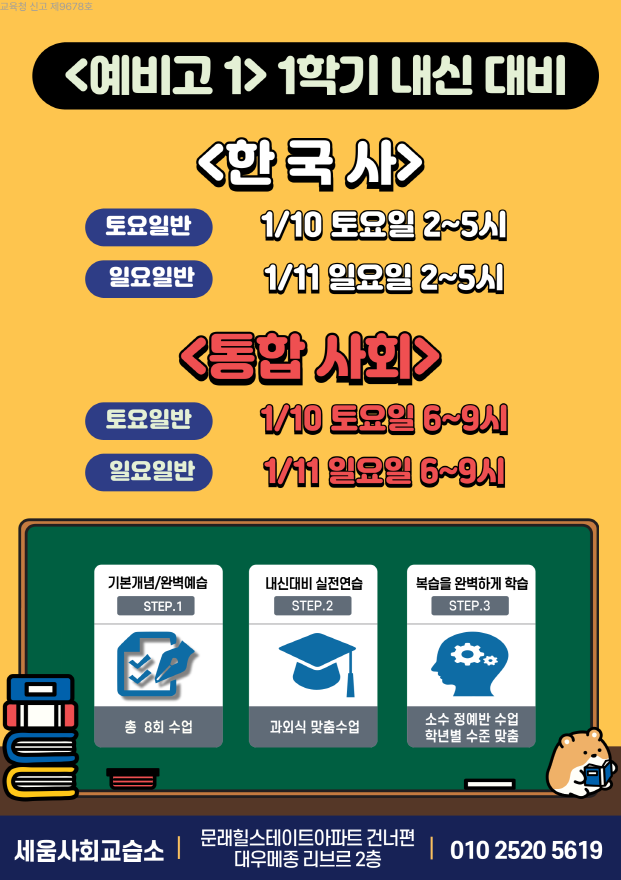 안녕하세요~<세움 역사사회 교습소>입니다. 겨울 방학 동안 예비고1을 위한 '미리 만나는 [ 한국사] [통합사회]' 수업을 진행하려 합니다. 작년 2025년 1년 동안 22개정 고1 한국사 통합사회 내신 대비 수업을 진행하며 느낀게 내신의 중요성 입니다. 말해 뭐해~이미 다 알고 계시겠지만 2028대입 부터 내신5등급제 & 정시 내신 반영 확대를 통해 내신이 중요성이 커지고 있는 만큼 꼼꼼히 대비를 해야 합니다. 학기 중에는 학교 행사, 수행 등으로 바쁘다보니 한국사, 통합사회 내신을 대비하기 쉽지 않습니다. 국영수 과목은 초등학교나 중학교 부터 다져왔다면 한국사, 통합사회는 고등학교 부터 제대로 시작하는 경우가....... <img src="https://blogthumb.pstatic.net/MjAyNjAxMDRfMTIg/MDAxNzY3NTMyMjk0NDQ4.Ww0h21u79hvEViSLCDFcfMwIp81eqBqkzUWTt_C-H3Yg.25i55cXiViQUBu3XPh0s8r1WqTicKEPmHNsbehe6sRcg.PNG/KakaoTalk_20260104_213957084.png?type=s3" />