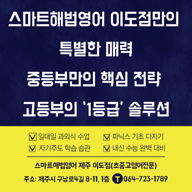 [제주시영어학원] 스마트해법영어 이도점만의 특별한 매력 & 중등부만의 핵심 전략 & 고등부의 ‘1등급’ 솔루션_이도해법영어 예비초 초등 중등 고등 신입 회원 모집 중