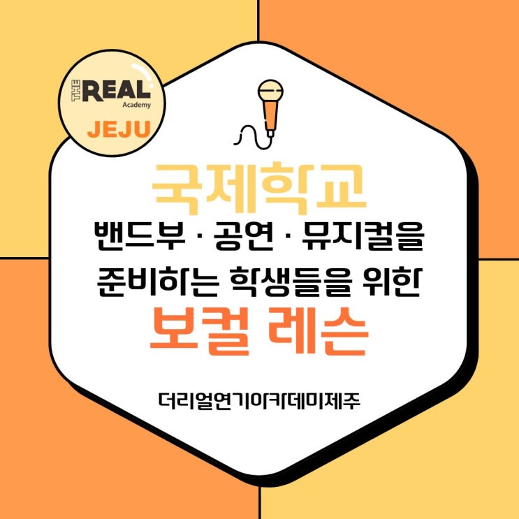 제주에서 국제학교 보컬레슨을 찾고 있다면 실제 공연과 무대를 기준으로 수업이 진행되는 곳을 찾는 게 중요합니다. 더리얼연기아카데미 제주학원은 국제학교 밴드부, 공연, 뮤지컬을 준비하는 학생들을 위한 실전 중심 보컬레슨을 진행하고 있습니다. 단순 취미가 아닌 무대에 바로 적용할 수 있는 발성, 호흡, 음정 교정을 중심으로 개인별 맞춤 커리큘럼이 구성됩니다. ✔ 실용보컬 / 뮤지컬보컬 / 밴드보컬 ✔ 오디션 및 입시 대비 ✔ 1:1 맞춤 트레이닝 진행 특히 국제학교 학생들의 경우 영어곡, 팝, 뮤지컬 장르를 함께 다루기 때문에 장르별 맞춤 지도가 필수인데 이 부분을 집중적으로 지도하고 있습니다. 수업은 주 1회 1:1 레슨으로....... <img src="https://blogthumb.pstatic.net/MjAyNjAzMTlfOTIg/MDAxNzczODk2ODU5MDE0.VCurKcVdVr4qL_tepzk71MDGakXCjIAYhEAmQ_Q1Dy4g.P-VuTP5cfot1Gm4qbuc1_BvTp4msiHk7fnJKD4wiSrQg.JPEG/1.jpg?type=s3" />