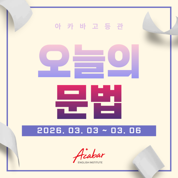 [대구 수성구 고등영어/아카바 고등관] 오늘의 문법(03.03 ~ 03.06)
