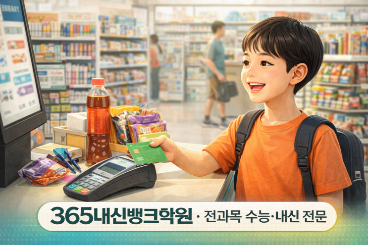 #초등금융교육 #체크카드 #용돈관리 #금융문해력 #동아일보 #학생소비트렌드 #365내신뱅크학원 #대구학원 편의점이나 문방구에서 자기 명의 체크카드를 결제하는 초등학생들이 빠르게 늘고 있습니다. 현금보다 카드가 익숙한 세대가 등장하면서, “아이들에게 금융교육이 반드시 필요하다”는 목소리가 커지고 있습니다. 동아일보 기사에서도 초등학생의 카드 사용 증가 → 충동 소비 위험 → 금융교육 필요성 이 흐름을 강조하고 있습니다. 초등생 카드 사용이 늘어나는 이유 ➤ 체크카드 발급 연령이 7세 이상으로 낮아지는 추세 ➤ 부모가 용돈을 계좌이체·카드 한도로 관리 ➤ 편의점·문방구·잡화점 중심의 소액 결제 증가 ➤ 온라인 쇼....... <img src="https://blogthumb.pstatic.net/MjAyNjAzMDNfNjIg/MDAxNzcyNTEyODg3MjY0.3wa32iL0LoSTw9MNs6GwVmgTVKwKlwEGbHp2Sxy6d5cg.xowwl_RUY1nybd1HcaLLDccqy1Bt9z9K4khIgooDaLog.PNG/%C3%CA%B5%EE%C7%D0%BB%FD.png?type=s3" />