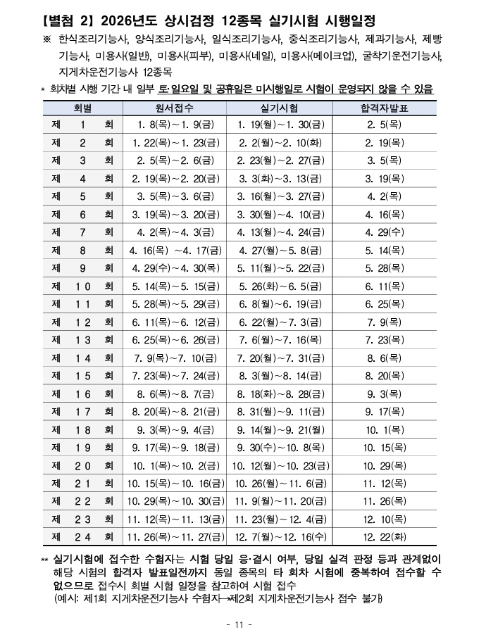 2026년 상시시험일정 한식조리기능사 양식조리기능사