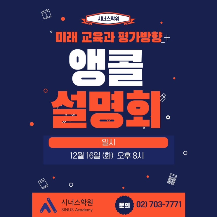 지난번 온라인 설명회를 들으시고, 너무 도움됐다며 한번 더 듣고 싶다는 부모님들과 시간대가 오전이어서 못들으셨던 직장인 부모님들을 위해 시너스학원과 클라이가 함께하는 앵콜 온라인 설명회를 개최합니다 지난 12/2일 진행되었던 시너스와 클라이가 함께한 온라인 설명회가 이뤄졌습니다. 대치동 1타 컨설턴트 “ 박인오 소장님 ”을 모시고 진행되었던 지난 설명회가 너무 유익했다며 많은 학부모님들이 피드백 주셨습니다 ^^ 초등부터 현 중3 학생들을 대상으로 했던 이번 설명회는 현재 급변하고 있는 입시상황을 정확하게 진단하고 어떻게 준비해 나가야 할지에 대한 내용으로 정말 꼭 부모님들이 알고 계셔야할 교육변화들을 잘 설명....... <img src="https://blogthumb.pstatic.net/MjAyNTEyMTNfMjMy/MDAxNzY1NjAzMDU1MzM5.OYPOb25PrDPVbgUCKpI670TMf_Hz5bxnG_37ddthbrMg.7xtUVFzCF8Qwul63jvSq7sk85F0-3_WqL3ZwRallccEg.JPEG/%C1%A6%B8%F1%C0%BB%A3%AD%C0%D4%B7%C2%C7%D8%C1%D6%BC%BC%BF%E4%A3%DF%A3%AD001%A3%A85%A3%A9.jpg?type=s3" />