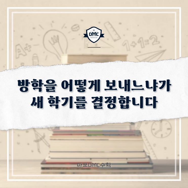 방학을 어떻게 보내느냐가 새 학기를 결정합니다 아이들에게 방학은 단순한 ‘쉬는 시간’이 아닙니다. 특히 겨울방학은 ✔ 지난 학년의 개념을 정리하고 ✔ 새 학년을 미리 준비하며 ✔ 수학에 대한 자신감을 다시 쌓을 수 있는 가장 중요한 골든타임이에요. 그래서 마포DMC수학에서는 아이들의 소중한 겨울방학 시간을 ‘의미 있는 성장의 시간’으로 만들기 위해 2026 겨울방학 특강 프로그램을 준비했습니다. 2026 마포DMC수학 겨울방학 특강 안내 이번 겨울방학 특강은 ✔ 재원생은 물론 ✔ 비재원생도 부담 없이 참여할 수 있도록 주제별 · 목표별로 알차게 구성했습니다. 1. 초등 주제별 집중 특강 [초1 · 2학년] 구구단 / 시계 특강 [초....... <img src="https://blogthumb.pstatic.net/MjAyNTEyMjRfODgg/MDAxNzY2NTA1MTQxNDc1.Q8i2jHZdK_sT3NLHFYArGbkboRxqw_d27Xbsqgu2gI0g.3NxStllVF_EkG3OmicTBtgQ0Elcq3uh-95zIjTDfN1Ug.JPEG/%BD%E6%B3%D7%C0%CF.jpg?type=s3" />