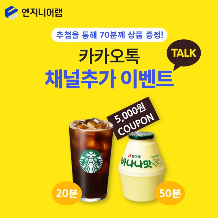 안녕하세요. 가장 확실한 합격 공식, 엔지니어랩 입니다. 엔지니어랩 카카오톡 채널을 추가하고 인증해 주시면, 추첨을 통해 총 70분께 스타벅스 커피 & 바나나우유를 드립니다. 또한, 엔지니어랩 ID까지 추가 인증해 주시면, 인강 5,000원 추가 할인 쿠폰도 함께 드려요! ▶ 참여 대상: 엔지니어랩 회원 ▶ 이벤트 기간: ~ 2026년 1월 31일(토) ▶ 경품 발송일: 2026년 2월 첫째주 내 엔지니어랩 카카오톡 채널에서는 자격증·공기업 취업 정보, 무료 특강 및 자료, 다양한 이벤트 소식을 한 번에 받아보실 수 있어요. 지금 바로 채널 추가하고 유용한 정보와 경품 모두 받아가세요! 친구추가 이벤트 참여하기> www.engineerlab.co.k....... <img src="https://blogthumb.pstatic.net/MjAyNTEyMjZfMTcw/MDAxNzY2NzI4MjgzNzM3.dxtq-362tmmglR7CvhUkOEaPRwXuWDc6ak9LzlQ_6bYg.pwUN9OBYGeJW5PhwpIzGDs0mIjsABvLSpVriqLkVV94g.JPEG/%C4%AB%C4%AB%BF%C0%C5%E5_%C3%A4%B3%CE%C3%DF%B0%A1%C0%CC%BA%A5%C6%AE.jpg?type=s3" />