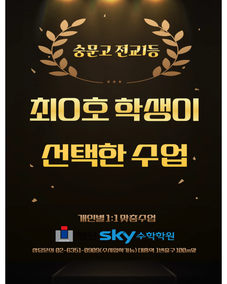 명인SKY수학 학원은 개인별 수준별 1:1 맞춤 수업 전문입니다. 수학 공부는 모르는 것에 집중해서 내 것으로 만드는 나 만의 공부법으로 극대화해야 합니다. <img src="https://blogthumb.pstatic.net/MjAyNTEyMjdfMTk3/MDAxNzY2ODE3MDM2NTIx.mS9fFdGgHscH_hO5LFL_-ekvfSvQrokiJkb00H6dIN4g.98GXQID3W0xeI4z_cTR6Lk3GPsWFvgaKcUGhi3xG32og.PNG/%C3%D6%C0%B1%C8%A3-%C0%FC%B1%B31%B5%EE.png?type=s3" />