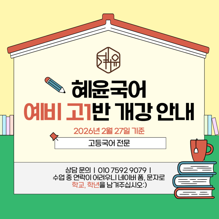 예비 고1반 개강 안내 (2026년 2월 27일 기준)