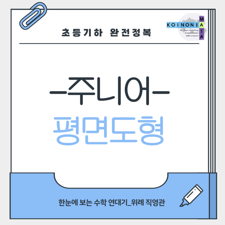 안녕하세요 한수연 수학학원 위레직영관입니다:) 지난 기본도형에 이어 오늘은 기하 영역의 수학적 사고 기초인 평면 도형에 대한 내용으로 말씀드리려고 합니다. " 도형은 공식만 외우면 되는 것 아닌가요?? " "초등 도형은 단순히 모양을 외우는 공부 아닌가요??" 많은 아이들이 삼각형, 사각형, 원 같은 도형을 배우면서 "그림을 외우는 공부"라고 생각하기 쉽습니다. 초등 평면 기하의 중요한 것!! 공식보다 도형의 이해와 경험 " 중등 기하 영역의 기초 단계 " 평면도형은 도형의 성질을 이해하고 공간 감각을 키우는 중요한 수학 영역입니다 . 이 과정은 이후 중등에서 배우게 되는 기하 영역의 기....... <img src="https://blogthumb.pstatic.net/MjAyNjAzMTJfMTY3/MDAxNzczMjk5NjU0MDkz.L6jo0vvL9eacXqy_jklOtfIPzmBVyKm_zDOVnlgMZr0g.G9p02EJOaCZM3A-6QTEO7ghrPh9F_lzWS6odaPlX3wcg.PNG/%C1%A6%B8%F1%C0%BB_%C0%D4%B7%C2%C7%D8%C1%D6%BC%BC%BF%E4..png?type=s3" />