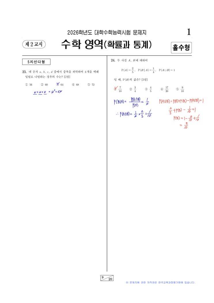 2026수능 확률과통계 해설