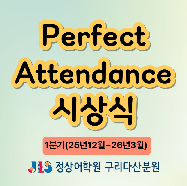 [정상어학원 구리 다산분원] 2026년 1분기 Perfect Attendance 시상
