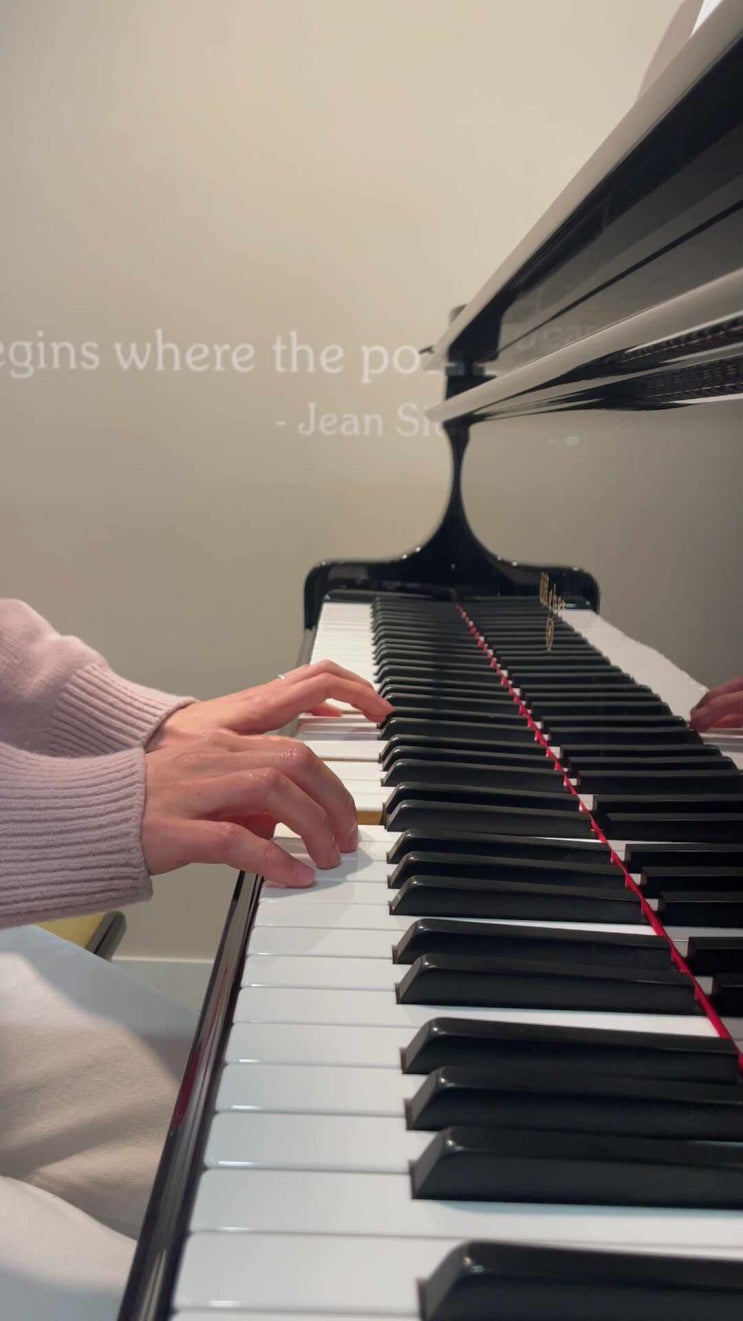 셋잇단음표로 왼손 반주를 하고 있는 곡입니다. 셋잇단음표, 다섯잇단음표, 일곱잇단음표 등의 연음부는 원래 2,4,8등으로 나눌 수 있는 음표의 길이 보다 더 짧고 고르게 연주하는 음표의 단위입니다. 이 곡에서는 한 박자에 세개의 8분음표를 넣는 연음부 연주이죠. 한 박자에 세개의 음표를 연주하기 때문에 조금 빠르게 연주해야합니다. 분산화음 반주와 덧줄 읽기 이 곡에서는 오른손에 덧줄이 많은 음표들이 자주 나옵니다. 높은음자리표 오선 위에 덧줄이 하나 있으면 “라,“, 덧줄이 두개면 ”도“, 덧줄이 세개이면 “미”라는 것을 익히는 연습이죠. 왼손은 세박자의 분산화음입니다. 왼손을 작게 연주해야만 높은 음역의 오른손 멜로....... <img src="https://phinf.pstatic.net/image.nmv/blog_2026_03_09_1365/QReijuBbVs_03.jpg?type=f480x480" />