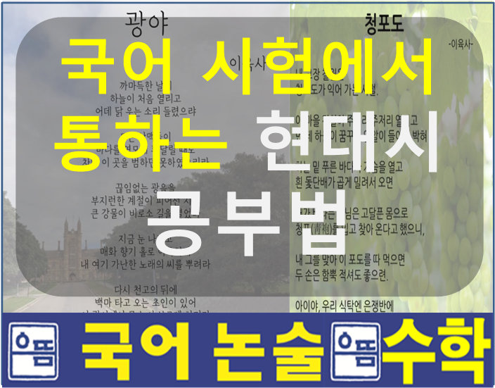 안녕하세요! 동작구 상도동, 본동 상도역, 노들역에 위치한 으뜸 논술 으뜸 국어 / 으뜸 수학 동작구 대표 국어 학원 으뜸 국어입니다. 오늘은 많은 학생들이 어려워하는 ‘현대 시’를 제대로 분석하며 읽는 방법에 대해 말씀드리려고 합니다. 현대 시란? 현대 시란 "시인이 자신의 생각과 느낌을 간결하고 함축적인 언어로 표현한 글"입니다. 따라서 현대 시를 이해하기 위해서는제목, 시어, 화자의 정서와 태도, 주제를 파악하는 것이 가장 중요합니다. 현대 시 분석, 이렇게 하세요! ① 제목 분석하기 시를 처음 마주하면 가장 먼저 눈에 들어오는 것은 제목과 작가입니다. 작가는 작품의 중요한 의도를 담아 제목을 정....... <img src="https://blogthumb.pstatic.net/MjAyNjAxMjNfOTEg/MDAxNzY5MTUwOTkyNzg5.nIzxKIJ-B2H8M53pM0zrCah-qtECtSx9R3IOPAd0uJUg.zMpf3XqQslHEW8dLDzvJHRTr_njpDnCmPppfuy1BC8og.PNG/%B1%D7%B8%B201.png?type=s3" />