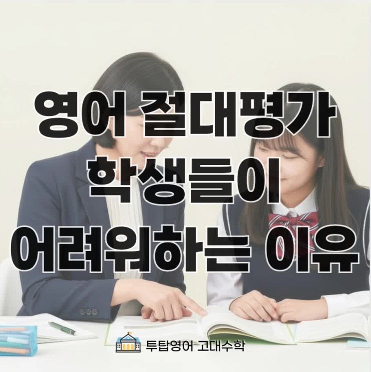 안녕하세요, 영어 과목에서 절대평가가 시행되면서 90점만 넘으면 될 거라 생각하는 학생들이 많았습니다. 그런데 고3이 되어 모의고사 점수가 하락하기 시작하면서 당황하거나 좌절하는 학생들이 많아요. 오늘은 미리 알고 대비할 수 있도록 영어 절대평가 학생들이 어려워하는 이유와 함께 효율적인 학습을 위한 핵심에 대해 이야기해볼까 합니다. 초기에 수능 영어 절대평가가 도입되었을 때는 사교육 경감과 학업 부담 완화를 목표로 했지만 이렇게 전환 이후 변별력을 위해 다른 과목들이 어려워졌고 이에 따라 영어는 고등학교 입학 전에 끝내놓고 고등학생 때는 국어와 수학에 집중해야 한다는 인식까지 자리 잡게 되었어요. 이렇게 사교....... <img src="https://phinf.pstatic.net/image.nmv/blog_2026_03_16_2938/aczAiHGRjh_01.jpg?type=f480x480" />