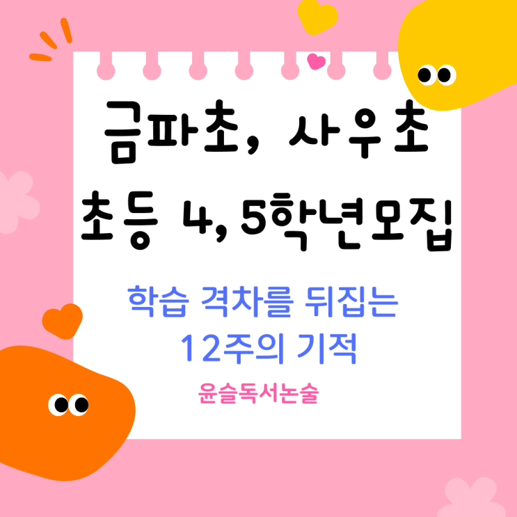 [김포 사우동] 초등 4·5학년 문해력 골든타임, 윤슬독서논술에서 완성하세요!