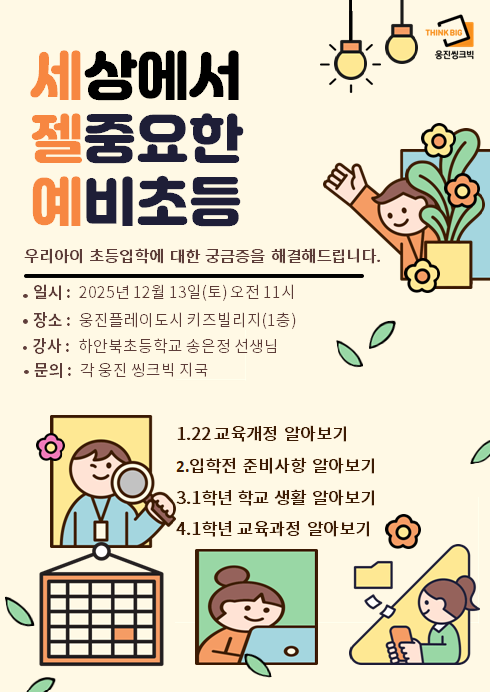 예비 초등 입학 준비 ✨ 1️⃣ 학습 준비보다 생활 습관이 우선입니다! ⏰ 정해진 시간에 일어나고 잠드는 규칙적인 생활 만들기 식사, 양치, 화장실을 스스로 할 수 있는 기본 자기관리 습관 ️ 정해진 시간 동안 앉아 있기 (10~15분이라도 OK) ♀️ 1학년 적응 속도는 생활 습관이 80% 좌우한다는 말이 있을 정도예요. 2️⃣ 학교에서 필요한 기본 태도 차례 기다리기 ♀️♂️ 손 들고 말하기 ♀️♂️ 교사와 또래에게 예의 있게 말하기 ️ 물건을 나눠 쓰고 양보하는 경험 쌓기 유치원과 달리 집단 규모가 커져서 ‘기다림’과 ‘질서’가 매우 중요해요. ✨ 3️⃣ 학습 능력보다 ‘학....... <img src="https://blogthumb.pstatic.net/MjAyNTEyMDNfMjgy/MDAxNzY0NzY1ODgzMjA1.DyEFx_-ffEqADVCMRCYi86JS7rSrXhXAwyLTBq2gVxAg.OMaEVymw3z6O1TSIQPORJEUdwQc8BikKptiu6tjC3Csg.PNG/1764680392314.png?type=s3" />