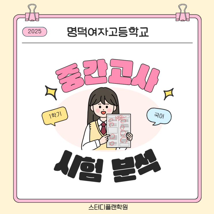 [스터디플랜학원 국어] 25년 명덕여자고등학교1학년 1학기 국어 중간고사 시험분석