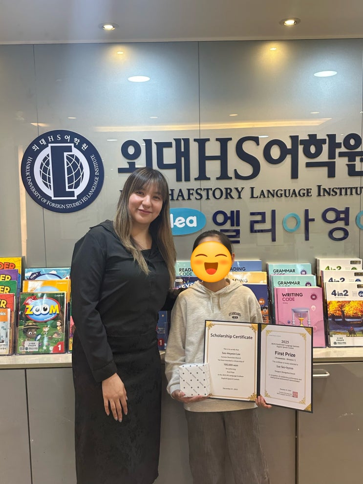 [외대HS어학원 강서등촌브랜치] 제 2회 스피치 콘테스트 시상식 모두모두 축하합니다 :) first prize 프레젠테이션 1 이O현 (초5) second prize 프레젠테이션 2 김O희 (초6) second prize 프레젠테이션 1 김O온 (초3) second prize 스토리텔링 1 박O빈 (초1) third prize 프레젠테이션 1 김O진 (초4) 아이들이 얼마나 열심히 연습하고 노력했는지 옆에서 봐온 선생님은 모두가 기특하고 대견스러워요! :) 이번 경험을 통해 아이들이 영어 말하기의 즐거움과 자신감을 한층 더 키울 수 있었기를 바래요 외대HS어학원 강서등촌브랜치는 AI튜터 엘리아와 함께합니다. #발산역영어학원 #마곡영어....... <img src="https://blogthumb.pstatic.net/MjAyNTEyMTdfMjA4/MDAxNzY1OTQ5NzkwMTA3.bzQYTVVr1Y8qxN7cC3vnuUHZ84cmfXs3X1ifyy67h4wg.HukiotVnzGaQW-Q300uaou54_XXEG7PsPa3mgpz8ZIAg.JPEG/KakaoTalk_20251217_143547219.jpg?type=s3" />