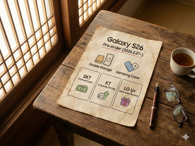 갤럭시 S26 사전예약 혜택 및 통신 3사 비교 총정리 (2026 최신) 2026년 2월 27일부터 시작되는 갤럭시 S26 사전예약 기간을 맞아 SKT, KT, LG U+ 등 통신사별 단독 사은품과 공통 혜택을 완벽 비교해 드립니다. 나에게 가장 유리한 선택지를 지금 바로 확인하세요. 2026년 상반기 가장 큰 기대를 모으고 있는 갤럭시 S26 시리즈 사전예약이 드디어 2월 27일(금) 0시부터 시작됩니다. 이번 모델은 '3세대 AI폰'으로 불리며 역대급 성능을 예고한 만큼, 통신 3사도 고객 유치를 위해 파격적인 혜택을 내걸었습니다. 3월 11일 공식 출시 전, 가장 저렴하고 알차게 구매할 수 있는 통신사별 핵심 정보를 정리해 드립니다. 1. 갤럭시 S26 사....... <img src="https://blogthumb.pstatic.net/MjAyNjAyMjZfMjQx/MDAxNzcyMDgzNjcxMDQ3.pxM_9BD3dB5URvGOoePHJI36La1EjE_n3gogd7cG0Xcg.lVR1bHoQtyiHE7d60LfIwGC_qE796Ztlbj1EtUlcBcog.PNG/%B0%B6%B7%B0%BD%C3_S26_%BB%E7%C0%FC%BF%B9%BE%E0_%C7%FD%C5%C3_%B9%D7_%C5%EB%BD%C5_3%BB%E7_%BA%F1%B1%B3_%C3%D1%C1%A4%B8%AE_%282026_%C3%D6%BD%C5%29Gemini_Generated_Image_sf6zsdsf6zsds.png?type=s3" />