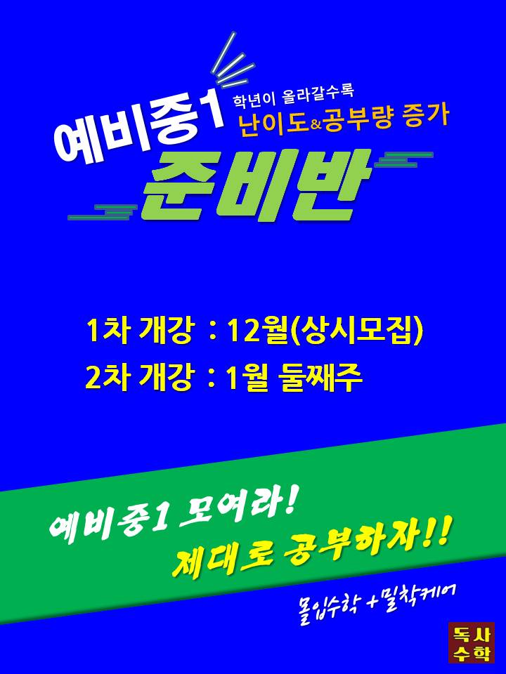안녕하세요^^ 독사수학학원입니다. "2026학년도 예비중1학년" 수업이 시작됩니다. . . 핵심 개념 수업, 문제풀이 습관 개선 & 실수 줄이기 훈련, 문제 해결하는 사고력과 자신감 키우기, 자주 틀리는 문제는 1:1 보완 지도 . . . 개념+원리+문제풀이+반복학습으로 수학 실력 향상!!! 독사수학에서 시작하세요~ 초.중.고 신규반은 현재 모집중입니다~~~! 학원으로 문의해주세요. 독사수학학원 (041)555-6034 충남 천안시 서북구 검은들3길 42번지 501호 (C&J 타워빌딩) # 독사수학학원 # 불당동 수학학원 # 초.중.고 수학학원 # 천안수학학원 # 독사수학 # 불당수학학원 # 수학학원 # 입시수학 <img src="https://blogthumb.pstatic.net/MjAyNTEyMDVfNTkg/MDAxNzY0OTI5ODc1MjM5.2Smiz958EJJEk74_iIalYiMF5kDPkAR01kTBZmYXXAYg.UJ_jw8-5LeRg7m-Pno4u6GrSM6-T_YL43Huydrp092og.JPEG/%BF%B9%BA%F1%C1%DF1%B8%F0%C1%FD.jpg?type=s3" />
