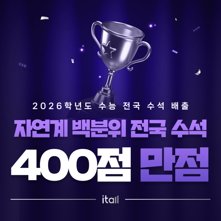 2026학년도 수능 자연계 백분위 전국 수석 400점 만점자, 잇올 스파르타 대전 유성센터에서 탄생!