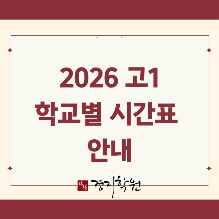 2026년 고1 학교별 시간표 안내 [강동 경지학원]