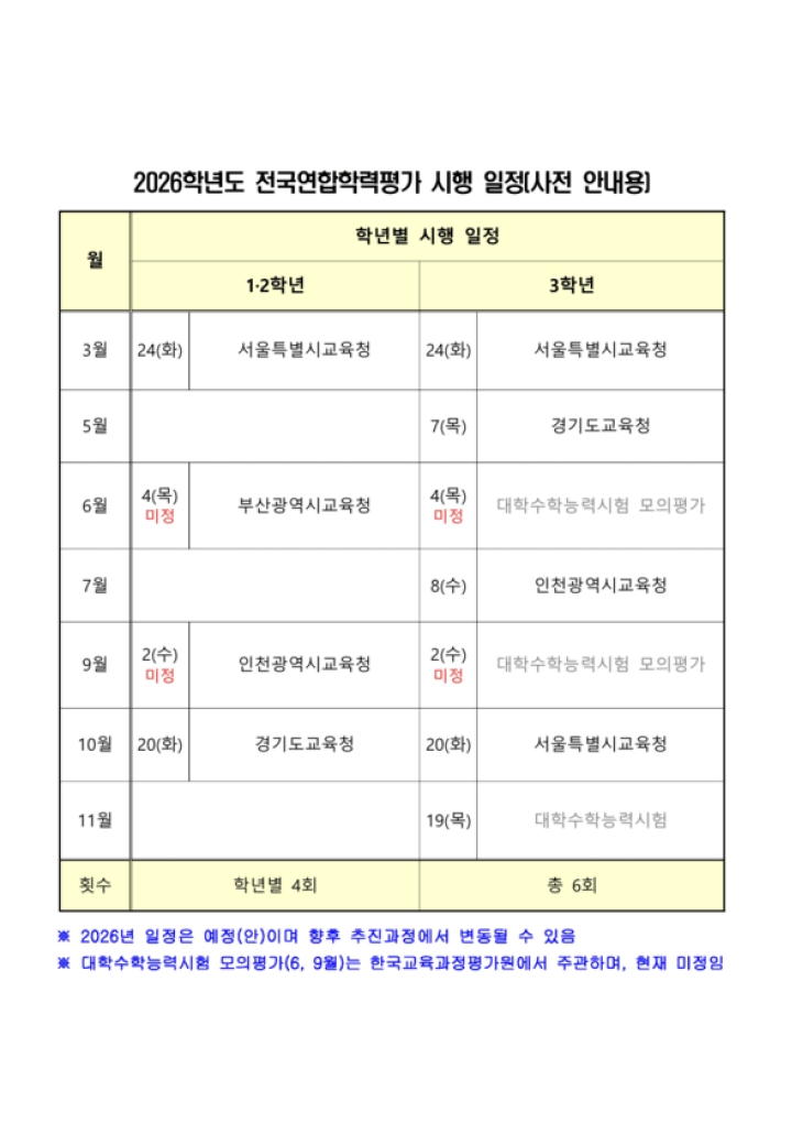 [ 금정구 구서동 영어학원/국제어학당/고등부 ] 2026학년도 전국 학력 평가 일정