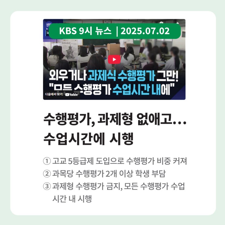 수행평가, 과제형 없애고 수업시간에 시행! 솔루니중등교과수행평가
