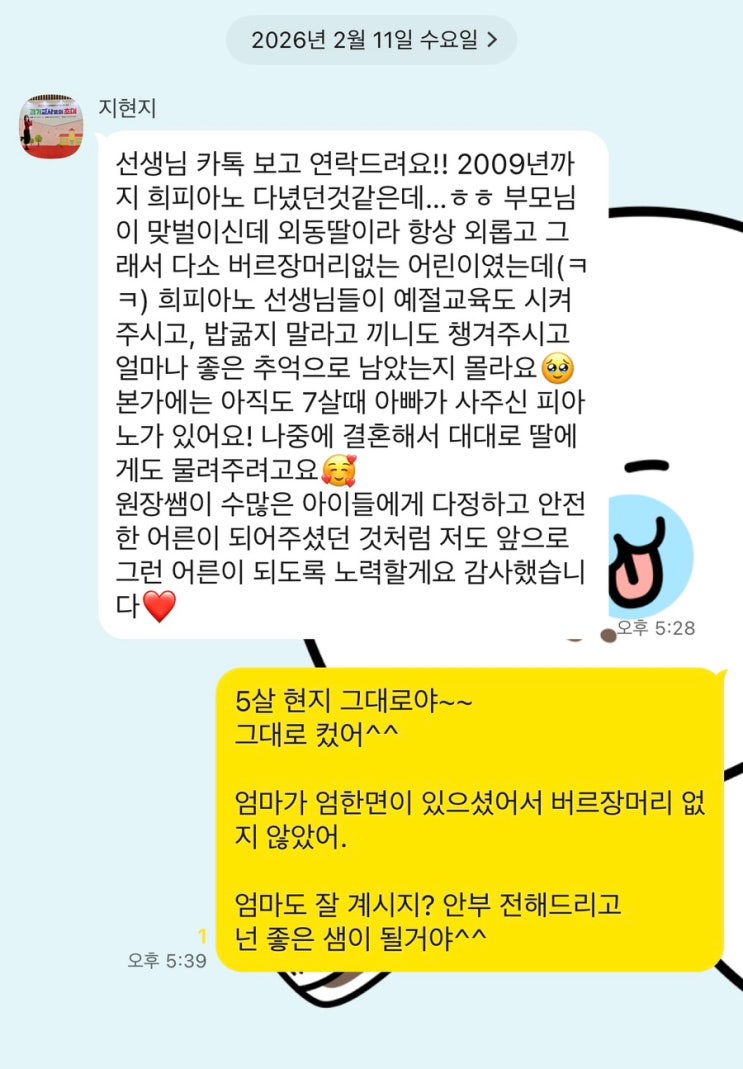 바뀐 카톡 덕분에 접한 옛 제자의 소식^^ 반가운 소식❤️ <img src="https://blogthumb.pstatic.net/MjAyNjAyMTFfMjYg/MDAxNzcwNzk5Mjk2NTUz.Hth0PtAVycD8BzuWEvCpuE_ktkPDYLZmh5DHmkmr9aYg.qfvaPExYmGz6c5i9ZbOk1ScMn4_RbQW94pOiQJYQvaEg.JPEG/IMG%A3%DF8772.jpg?type=s3" />