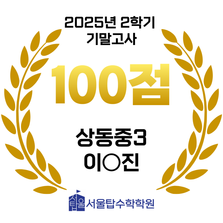 부천상동수학학원 서울탑수학학원입니다. 상동중 3학년 2학기 수학 기말고사에서 100점을 맞은 학생들, 축하합니다!! 중학교 마지막 시험을 잘 마무리했으니 이제 고등수학 준비를 착실히 합시다!! <img src="https://blogthumb.pstatic.net/MjAyNTEyMDhfNjkg/MDAxNzY1MTc4MzE2NjQz.DXKKLB0qd8W14-4fxzBrPHFoCudcG9leTQ_TZtPFIPgg.D8anD28-lr0uglY4_3SufpU7IQZgH__uuCXEvLhgp8Yg.PNG/2.png?type=s3" />