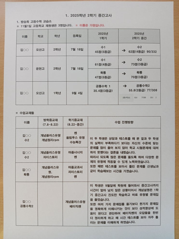 2025학년도 2학기 재원생 성적입니다. 아직은 저희 학원에 다니는 학생이 많지는 않지만 이 세명이 모두 성적 향상을 이루어 내었습니다. 학생들에게 정말 열심히 공부해 주어서 고맙다는 말을 전하고 싶습니다. <img src="https://blogthumb.pstatic.net/MjAyNTExMTFfMTA1/MDAxNzYyODIxNTkxODM2.KIb3kYPH9iGrS8nzJJfrz8fboRZL9rgqRYiuGVmcvVcg.r_cBU1ZpOOfjEqeze3i80yCQgOz8vQNWVuxheEJ-cxcg.JPEG/20251111_0938371.jpg?type=s3" />