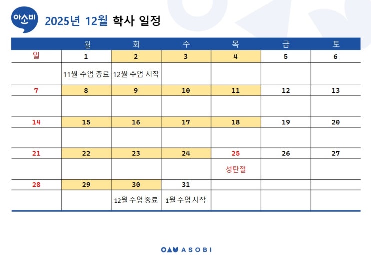 12월분 학사일정 안내