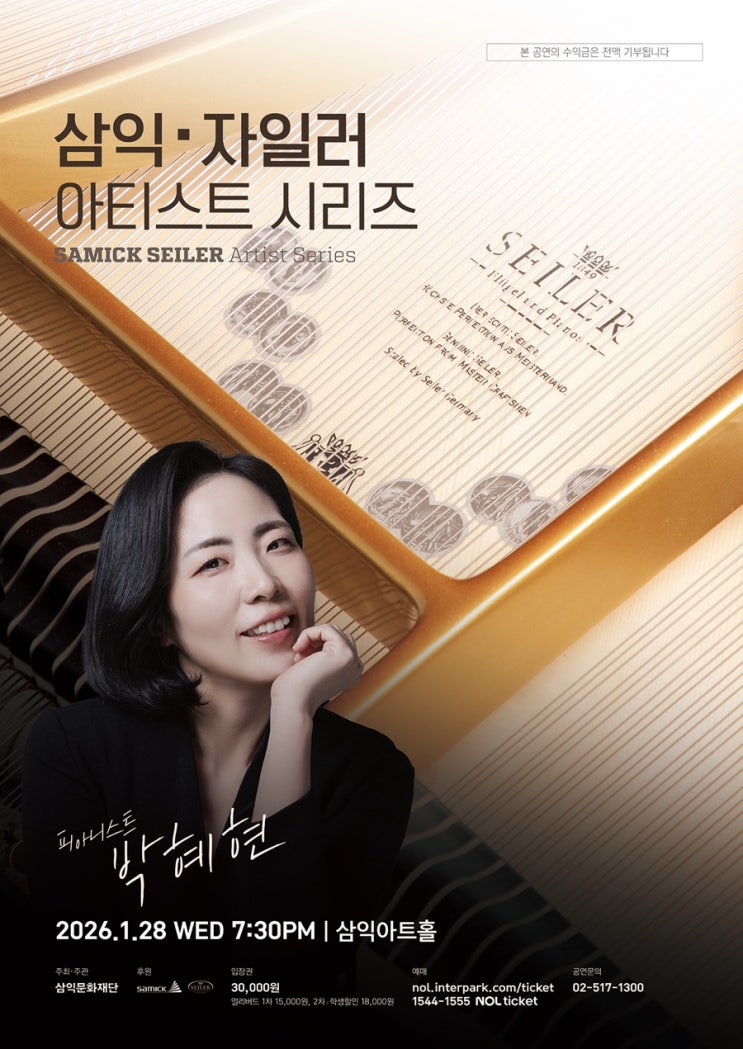 26년도 1월의 삼익자일러아티스트 시리즈의 연주자는 박혜현선생님을 모셨습니다!! 많은 관심 부탁드려요~ [프로그램] A. Copland Night Thoughts R. Schumann Fantasiestucke, Op. 12 Des Abends Aufschwung Warum? Grillen In der Nacht Fabel Traumes Wirren Ende vom Lied Intermission W. A. Mozart Piano Sonata No. 11 in A Major, K. 331 I. Andante grazioso II. Menuetto III. Alla Turca (Allegretto) N. Kapustin Concert Etudes, Op. 40 No. 1 Prelude No. 6 Pastoral No. 7 Intermezzo [프로필] 피아니스트 박혜현 -예원학교, 서울예술고등학교(우등졸업), 서울대학교 음악대학 졸업 -New England Conservatory of Music에서 석사....... <img src="https://blogthumb.pstatic.net/MjAyNjAxMTNfMTU1/MDAxNzY4MjMyNjUwNDQ2.fDVZVsJmJQNCu-A7lKlJrqyiajUJQBUbOwO2PFWWIukg.Hu_wDci89OADdDIzJfyUVQAVdXUxlbi1KbzCcEF1t_cg.JPEG/IMG%A3%DF5001.JPG?type=s3" />