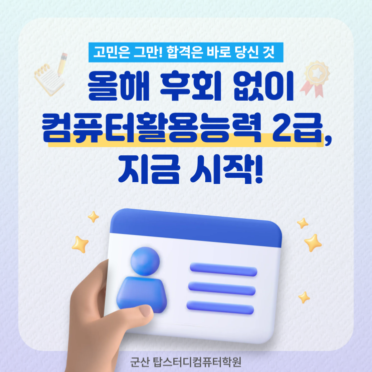 ⭐⭐군산 컴퓨터학원/ 컴퓨터활용능력 2급 국비 개강 및 모집 안내