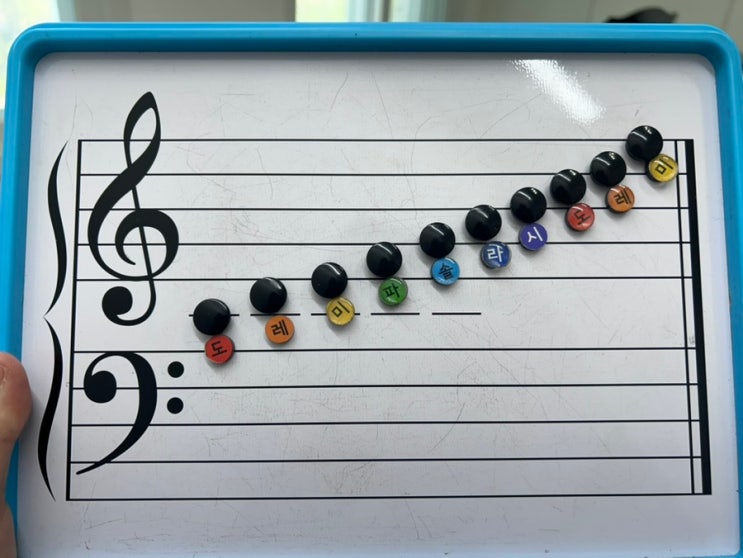 [#6세피아노] 6살 학생에게 배운다. 한달간 건반익히기, 음표, 계이름부르기가 끝나가고 <악보 읽는법>을 시작하였다. <줄-칸> 개념을 가르쳐주며, 직접 <줄-칸>에 검정자석 붙이기를 수업했다. 모든 과정에 섬세한 난이도 조절이 필요하다. 학생이 잘 이해하여 음표읽기까지 하니 학생이 계이름 자석을 쭈욱 붙여보고싶다고 한다. 선생님보다 한단계 앞서 생각하고, 유심히 관찰하며 계이름읽는 모습에 감탄이 절로 나온다. 스스로 발견하고 즐거워 하는 아이들의 표정을 보면 진짜 찐 감동과 기쁨이 온다. 오늘도 선생님에게 이렇게 큰 감동을 줘서 고마워! 다른 친구들과도 계이름 붙이기 해볼께~ <img src="https://blogthumb.pstatic.net/MjAyNjA0MDRfMTE0/MDAxNzc1MjgzODg3OTUw.hQut8D0j31AfsCTXVSnEzraZKnUemudJ5W_V-sZ46oAg.P_UdWfFmZPrBHcwTSA3JPpuVGRSz_qDBTVn5cFCuj1Ag.JPEG/IMG%A3%DF5561.jpg?type=s3" />
