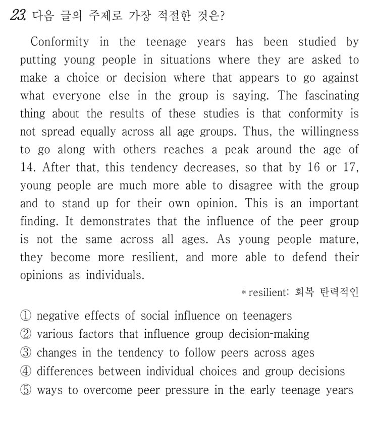 영어 지문을 읽다 보면 가끔 한 번쯤 멈칫하게 되는 문장 구조를 만나게 됩니다. 고등 영어, 특히 수능이나 모의고사 지문은 문장이 길고 구조가 복잡해서 "대체 이 연결고리가 어디에 걸리는 거지?" 싶을 때가 많죠. 오늘 가져온 문장이 딱 그렇습니다. 함께 살펴볼까요? 2026년 3월 치른 고1 모의고사 23번 첫번째 문장입니다. 1. 문제의 문장 “Conformity in the teenage years has been studied by putting young people in situations where they are asked to make a choice or decision where that appears to go against what everyone else in the group is saying.” 여기서 두 번째 where절의 선행사는 무엇일까요? 바로 앞....... <img src="https://blogthumb.pstatic.net/MjAyNjAzMzBfNjkg/MDAxNzc0ODQ0NjAwNzY4.QMldT26B-LAPFjUZRp7f0g7UYYLVviUNSKhHner43RAg.UfW5BSFdIj92inrO3uyA5d7uuZlWzvEHc90fvhbmlNcg.JPEG/image.JPEG?type=s3" />