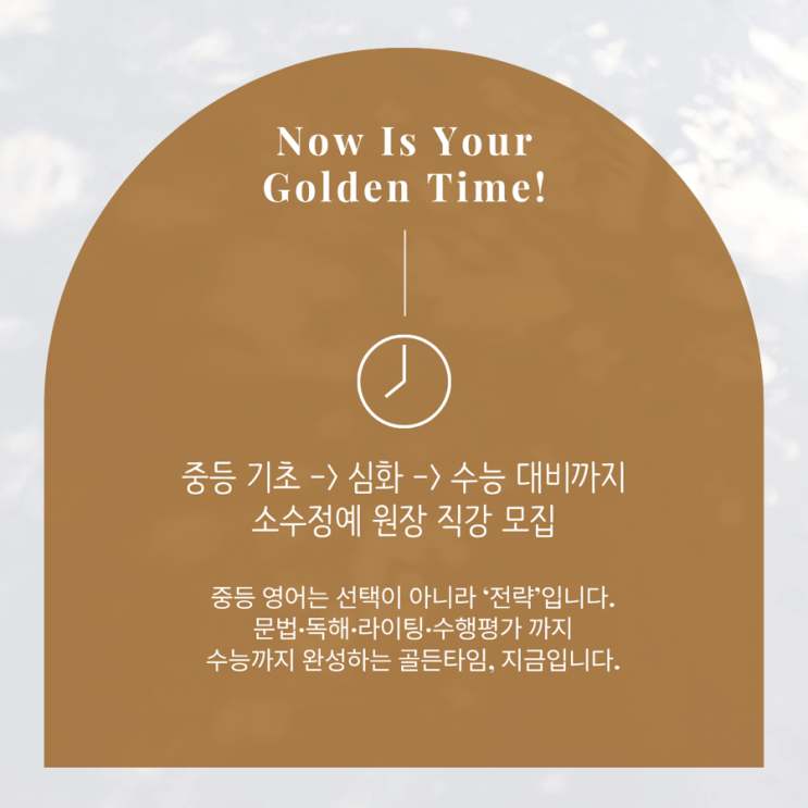 수능식 영어의 골든타임은 초5부터입니다! 초4 브릿지 과정에서 예비중 학습 전환을 준비하고, 초5부터는 중등 선행 과정을 통해 중등에서 수능 완성을 목표로, 고등 영어 학습에 필요한 핵심 역량을 체계적으로 완성합니다. 중등 영어는 단순한 내신 대비가 아니라 고등·수능 영어의 구조를 이해하고 적용하는 전략적 단계입니다. ✔ 문법 개념의 체계적 정리 ✔ 문장 구조 기반 독해 훈련 ✔ 수행평가와 서술형까지 연결되는 실전 적용 겉핥기식 선행이 아닌, 학년이 올라가도 흔들리지 않는 수능형 영어 학습 구조를 설계합니다. 초4~중등 영어 모집 중 소수 정예 · 선착순 마감 영어는 시기와 방식이 결과를 만듭니다. 골든타....... <img src="https://blogthumb.pstatic.net/MjAyNjAxMjZfMTYx/MDAxNzY5MzYzNzEwNDU1.u1hoRvvDMiTQgbCm7mPgFPjY4CGyUTHtHnLGrVAPuvAg.isoE_aGKdUvZFnmG5q50fCZCyTE_0iGzZjwZz2OJYTQg.PNG/IMG%A3%DF0283.PNG?type=s3" />