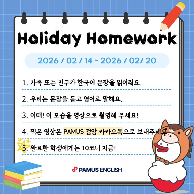 [검암동 영어] 설 연휴 숙제 안내드립니다.
