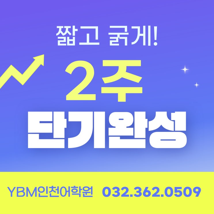 안녕하세요. YBM인천어학원입니다! 토익이나 토익스피킹, “이번엔 진짜 짧게 집중해서 끝내고 싶다” 생각하신 적 있으시죠? YBM인천어학원에서는 단기간 실력 상승을 목표로 하는 분들을 위해 2주완성반 프로그램을 운영하고 있는데요, 이번 2월에는 특히 많이 찾는 인기 강좌 ✔ 토익깡패 ✔ 인투토익 ✔ 제이쌤 토익스피킹 이렇게 3가지 반이 순차적으로 개강합니다. 단기간 점수 상승을 원하시는 분들 집중해주세요!! ✅ 토익깡패 – 2월 9일 (월) 개강 토익 점수가 정체돼 있거나 기본은 있지만 고득점이 안 나오는 분들께 특히 추천되는 수업입니다. 토익깡패 수업은 문법&패턴 + 실전 LC + 실전 RC를 동시에 다루며, ✔ 문법을 단순....... <img src="https://blogthumb.pstatic.net/MjAyNjAyMDVfOTIg/MDAxNzcwMjcyNDgzNTE1.JKUhzLhv0Ug1e3FKbpPHRu6KguV2yWWcPejvzTeyAG0g._2CDYMPG7LF24amKijZKGbvsBq-QZS1sn0JpJiEZiUog.JPEG/%C1%A6%B8%F1%C0%BB_%C0%D4%B7%C2%C7%D8%C1%D6%BC%BC%BF%E4..jpg?type=s3" />