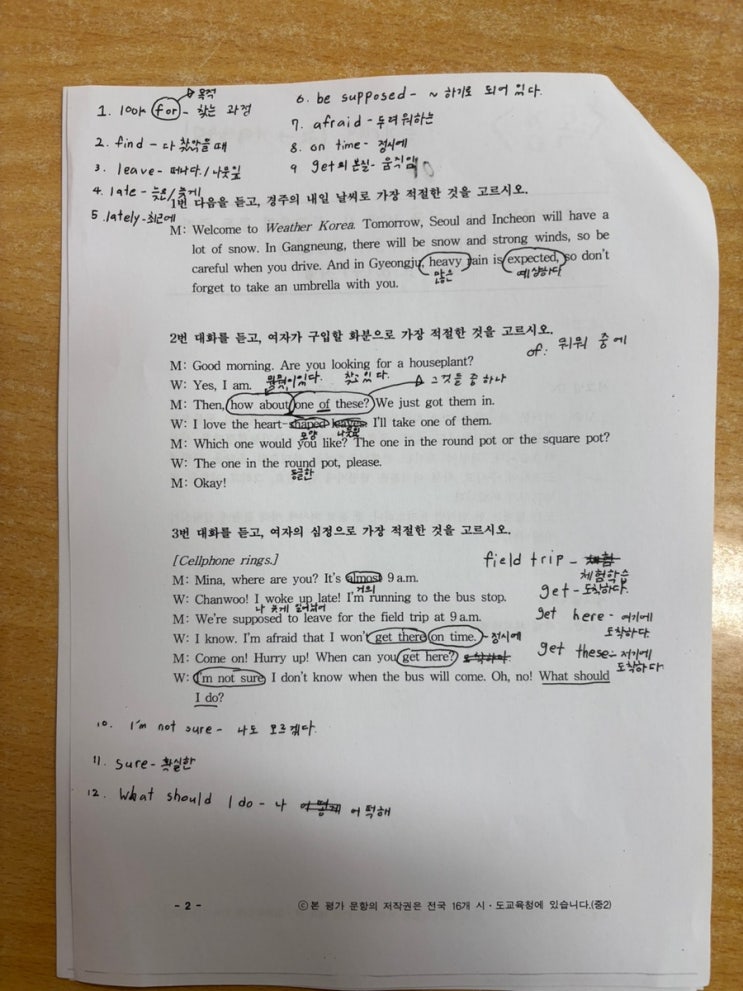 초등고학년 무료특강 중2 듣기 스크립트 공부