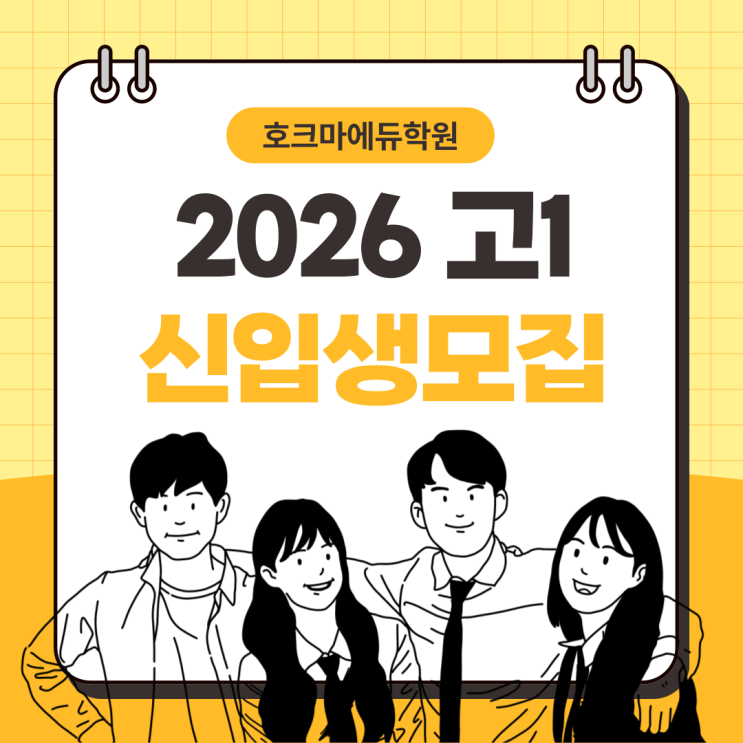 안녕하세요. 호크마에듀학원입니다. 고등학교 3년은 “관리”의 차이가 결과를 만듭니다. 중등과는 완전히 다른 고등 내신, 그리고 생기부·수시·정시까지 연결되는 입시 전략. 호크마에듀는 단순 수업이 아니라 성적 + 학생부 + 입시 방향까지 함께 설계합니다. 고1 과목별 시간표 2026년부터 달라지는 호크마 관리 시스템 이번 26년부터는 예비 고1 학생들의 좋은 대학 합격을 위한 프로그램으로 생기부 디자인 컨설팅 일부를 무료로 전환하여 전체 재원생을 체계적으로 관리하기로 결정했습니다. 특히, 영어 + 수학 수강 재원생 전원 입시 컨설팅 무료 제공 ✅ 무료 컨설팅 (영수 재원생 전원) 고1 교과별 수행평가 첨삭 및 최....... <img src="https://blogthumb.pstatic.net/MjAyNjAyMjNfMTc1/MDAxNzcxODMyNTc4Mzgy.FLLWY9ABq8rJM4g2MuPJno-Mix0gNJbuWQrHpkHseWog.aThSSTSYgMS1zf0QZdk-HVsw-v34NYEhghyUKeDWoL0g.PNG/%C1%A6%B8%F1%C0%BB-%C0%D4%B7%C2%C7%D8%C1%D6%BC%BC%BF%E4_-001.png?type=s3" />