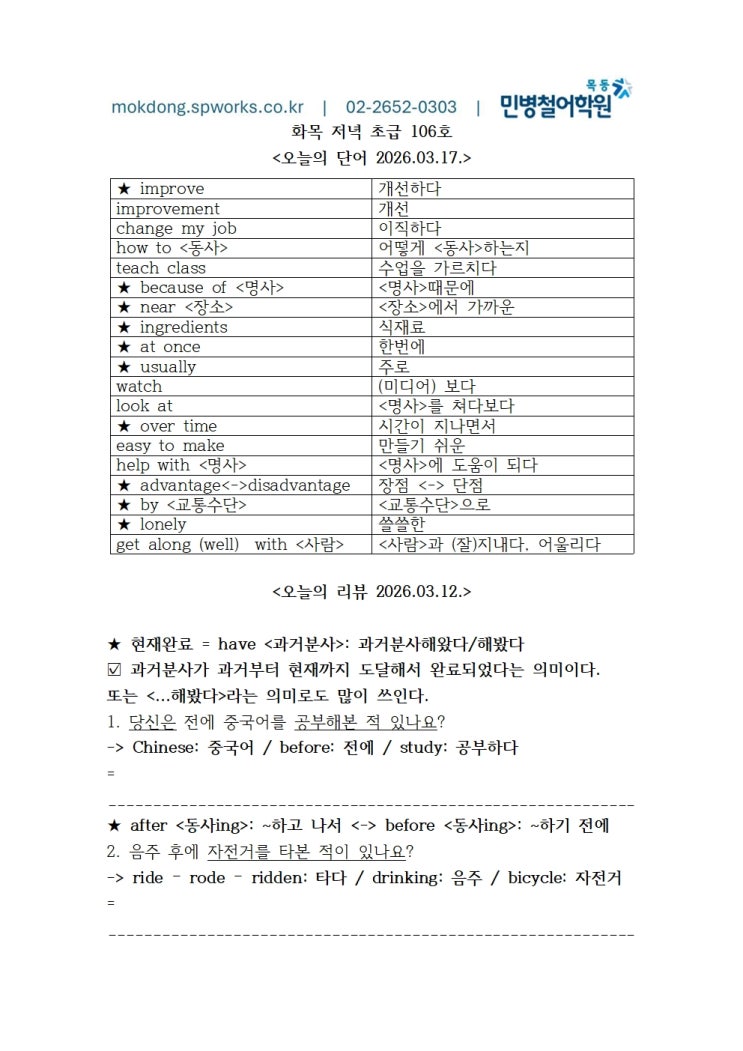 2026.03.17. 화목 저녁 초급 106호 (19:30-21:30)