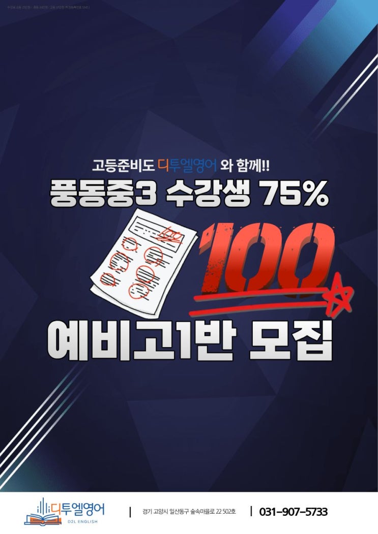 안녕하세요. 풍동 영어학원 디투엘 영어입니다. 저번주 중학생으로써 마지막 시험인 중3 기말고사가 마무리 되었습니다. 풍동 영어학원 디투엘 영어학원의 풍동중 3학년 학생들은 유종의 미를 거두며 마지막까지 최선을 다하는 모습을 보이며, 수강생 75%가 만점을 받는 좋은 결과를 이루었습니다^^ ( 사실, 시험 준비하는 기간 감기와 독감의 유행으로 학생들의 컨디션이 좋지 않았음에도 불구하고 최선을 다해준 디투엘 영어의 수강생 전원에게 칭찬을 해주고 싶어요!) 이번 시험을 치르고 나온 학생들의 첫 마디는 시험이 너무 쉬웠어요! 시험이 쉽게 느껴질 수 있도록 적중률 높은 학습과 반복적인 연습의 결과이기도 합니다. 그럼 풍동영어....... <img src="https://blogthumb.pstatic.net/MjAyNTExMjVfMTYy/MDAxNzY0MDQ3NTc4OTE2.OE0kK6RzGcY8Vn9gYymkII9UzdfsO4QozKdx77eF0B0g.9aTkK3RLtSEpEVNaCg3GfTSRfgN97-oaXO5KfBgFG8Yg.JPEG/KakaoTalk_20251124_114638281.jpg?type=s3" />