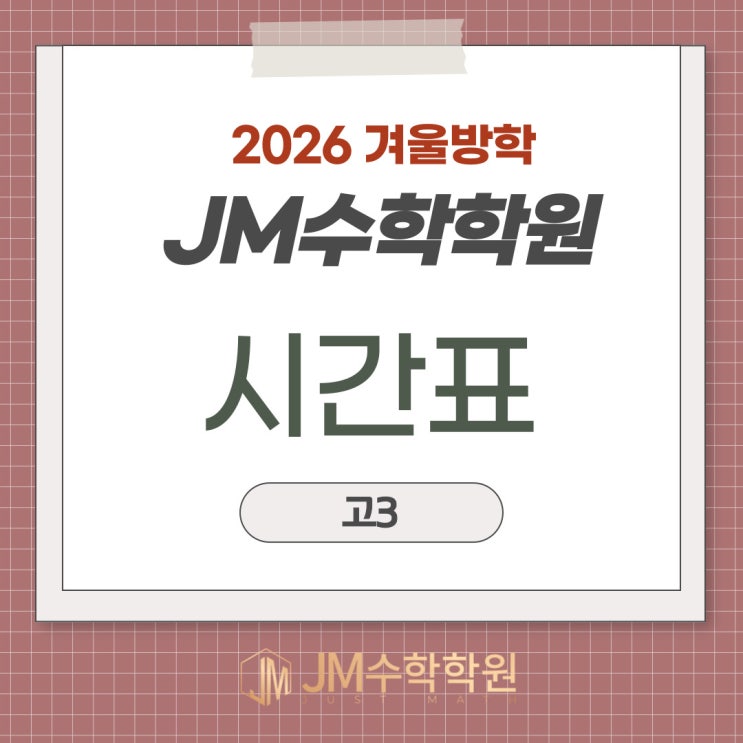 안녕하세요! JM수학학원입니다. 2025-26 겨울방학 고3 시간표 안내드립니다. 자세한 문의 010.2677.8992 <img src="https://blogthumb.pstatic.net/MjAyNTEyMDRfMTE2/MDAxNzY0NzgyMzgzOTc5.TH3e4AFM_O7YRJaz8i2gVEzTvgXwpzpyjIcXgHUxf68g.u6T7Cpf0jmjiL5DgxvWCvgcWHxPRdhkE7lAV7c8o0f0g.JPEG/%C1%A6%B8%F1%C0%BB-%C0%D4%B7%C2%C7%D8%C1%D6%BC%BC%BF%E4_-002.jpg?type=s3" />
