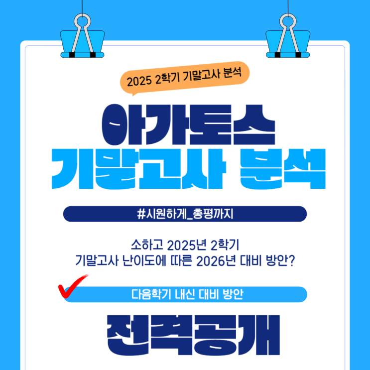 안녕하세요, 광명수학과학 전문 아가토스 학원입니다. 2025 2학기 기말고사 마무리 그리고 아가토스에서 대비한 학생들의 성적 결과는? 아가토스에서 제작한 자체교재의 높은 적중률로 인해 성적도 당연하듯 고공행진! "작년이랑 성적이 아예 달라졌어요 " " 아가토스 교재에서 다 봤던 문제들이에요 " 아가토스에서만 진행하는 '특별 내신 관리 & 적중문제 ' 설마 아직도 모르신다면? 어려운 문제도 척척 왜냐 이미 봤던 문제이기에 한번 풀어봤던 문제이기에! 그런 편안함을 주는 곳 바로 아가토스입니다. 25년 소하고등학교 1학년 2학기 기말고사 수학 심층 분석 ▶ 객관식 18문항 / 논술형 1문제....... <img src="https://blogthumb.pstatic.net/MjAyNTEyMDZfMTc2/MDAxNzY0OTg2MDcyMTQz.66LGD3AITu7wAGpDyQMNPFhK4v0gN5m38rNmeV1wnTkg.6nIHf_HHZaIyuKQffE7WkYmtl82yahFnc0nLx6ZGIqQg.PNG/%BE%C6%B0%A1%C5%E4%BD%BA_%C7%D9%BD%C9-009.png?type=s3" />