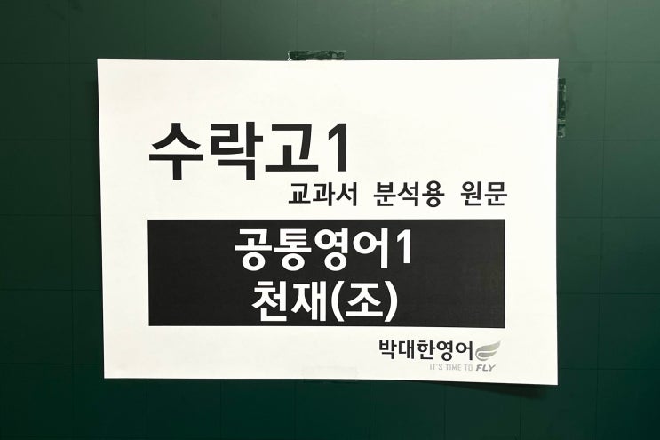 수락고1 영어 내신 자료 공통영어1 천재(조) 1과 교과서 분석용 원문! 1. 학습 내용 이해: 선생님과 본문 전체 지문 1:1 학습 2. 학습 내용 숙지: 워크북 4종이상 x 3세트 진행 및 선생님과 1:1 학습 3. 학습 내용 숙달: 변형 문제 6종이상 x 3세트 진행 및 선생님과 1:1 학습 영어는 자료. 자료는 박대한. 강사는 강의. 강의는 박대한. 학원은 관리. 관리는 박대한. 아아아아아아아아아아억앜! - 노원에서 영어강사 박대한 드림 with 수락고등학교, since 2010, 진심으로 그리고 견고하게 마들역 1번 출구 박대한영어학원 02-938-7770 (상계관) 창동역 1번 출구 박대한영어학원 02-900-7770 (창동관) 공통영어1 천재(조) 1과 원문 Understanding....... <img src="https://blogthumb.pstatic.net/MjAyNjAxMDNfMjM3/MDAxNzY3NDM5NjIzMjYx.nL5d1U3WQguEPPI1asQ4nWcfGqg01vV9IQnN7VTOsuog.85h04oYiktQV57PbSNoLeUV2LVC1xhilaMB6lTb01zsg.JPEG/%BC%F6%B6%F4%B0%ED1_%C3%B5%C0%E7%28%C1%B6%29.jpg?type=s3" />