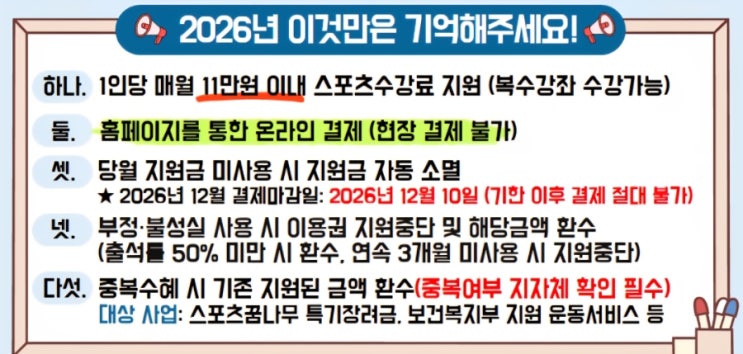 경기 침체로 모두가 어려움을 함께하는 요즘 아이들의 성장까지 포기하기엔 너무나 아쉽지요 그래서 놓지고 계신분들께 전달드리고자 정부 스포츠 교육 지원에 대해 안내드립니다 좋은 기회 잘 이용하시라고 공유해요 스포츠 바우처로 즐기는 신나는 폴댄스 우리아이의 숨겨진 매력을 발견할 수 있는 기회 !! ㅡ 우리아이 운동 부담없이 준비해주세요! ㅡ 정부지원 스포츠바우처 ㅡ ㅡ 생각보다 간단한 신청방법과 쉽게 쓸수있는 혜택입니다 선정 기준에 들지않는 가정에게는 많이 아쉽지만 기준에 부합한다면 꼭 신청하셔서 이용해보세요 국민체육공단 스포츠강좌 이용권 검색하셔서 [신청서 다운 가능합니다] 신청서 다운로드하면 보이는 신....... <img src="https://blogthumb.pstatic.net/MjAyNjAxMjRfMjQ3/MDAxNzY5MjYxMDU0ODU5.89TKrDIAQok_yHWnRhtM_TNlwGMXaERKTrX2qgwdBAMg.qid5aqL3mwxSRntVVbZ4GdkLC_3tb6w3buBKBrz6AfEg.JPEG/900%A3%DFScreenshot%A3%DF20260124%A3%DF222306%A3%DFNAVER.jpg?type=s3" />