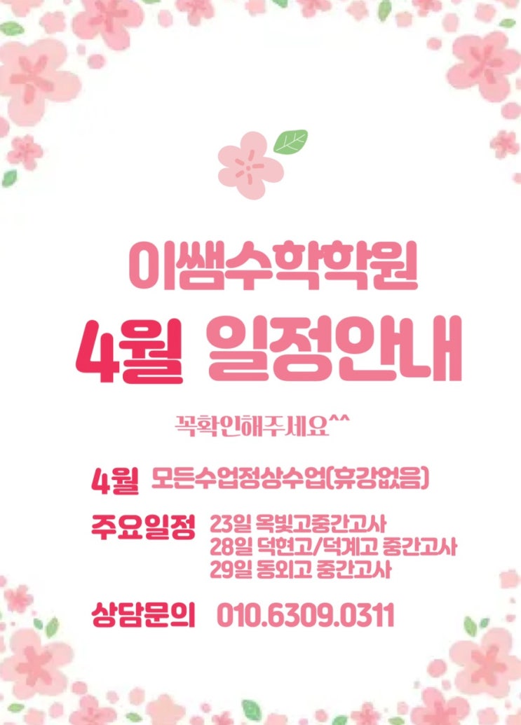 새학기가 정신없이 지나가느라ㅠ 안 올린지도 모른 3월 일정입니다 4월일정과 함께 올립니다. 이미 다 지났지만요… 양심에 찔려서ㅠㅠ 이제 꼭 챙겨서 올리겠습니다! <img src="https://blogthumb.pstatic.net/MjAyNjAzMjRfMjYz/MDAxNzc0MzM0NjMxMTM4._HYTtCmgGKH2jWsj_wXKlBn65vqOXDsJCDk_m95ZV3og.F8KhSOZBOFGI85KNKweDfXB32cTzwjOXfg38fL-BSA0g.JPEG/IMG%A3%DF6776.jpg?type=s3" />