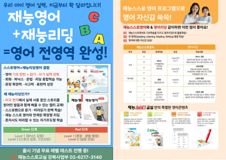 안녕하세요. 재능교육 양평학습센터입니다. 오늘은 우리 아이 영어교육 정보 안내드립니다. 기존에 진행되었던 재능스스로 영어는 영어선생님과 함께 파닉스+단어+문법+간단한 리딩을 함께 학습했습니다. 아이들의 부족한 리딩 학습을 제대로 학습하기 위해 영어 리딩 교재가 출시 되었습니다! 미국 현지에서 실제 사용 중인 스토리를 원어민 발음과 함께 배울 수 있는 멀티교재! 기초영어학습은 물론! 리딩학습까지! 영어의 전영역을 완성해주세요! 우리 아이의 영어 자신감을 높여 주세요! 영어 상담문의 : 031-772-4615 <img src="https://blogthumb.pstatic.net/MjAyNjAxMTJfOTIg/MDAxNzY4MTk3MDE5MzU5.-DQZiqSRqekh7w5_BrPDxEfd1LL4ZlPtJvfWzjVryqkg.BXPNqQufKwoWuWmCxRJ46cTu6qHI5JdgoAvMWtk33rwg.PNG/image.png?type=s3" />